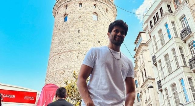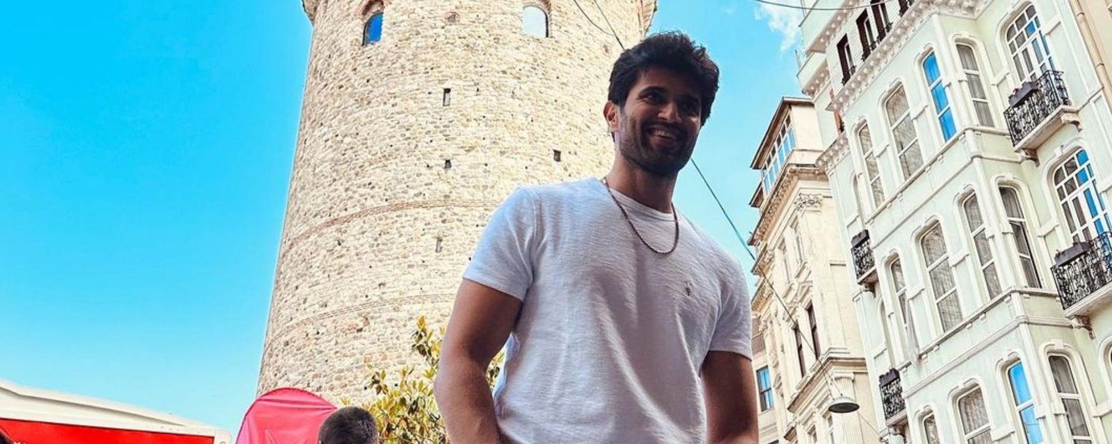 Vijaya Devarakonda's incredible images from his trip to Turkey have taken over Instagram today. He has been occupied with shooting, travelling, and sampling the food of this lovely nation. He appears in one of the photos standing tall in front of Istanbul's "Galata Tower," looking dapper with a white t-shirt, blue pants, and a checked shirt on top of a black chain.